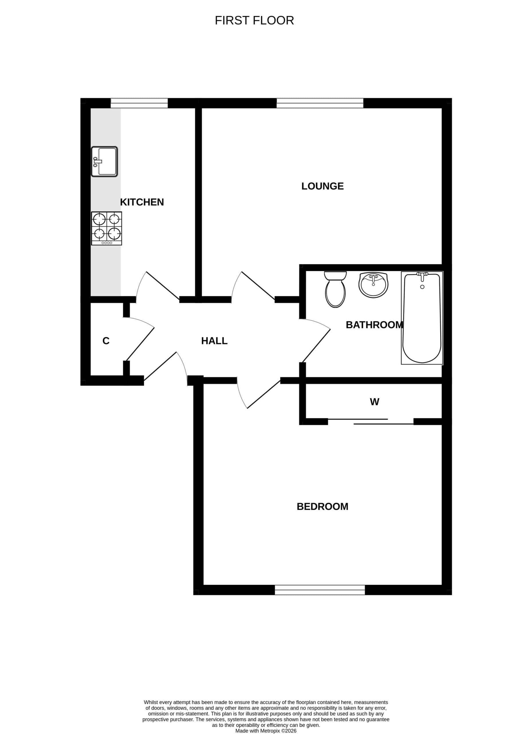 ACCOMMODATION COMPRISING: ENTRANCE HALLWAY, KITCHEN, LOUNGE, BEDROOM, BATHROOM