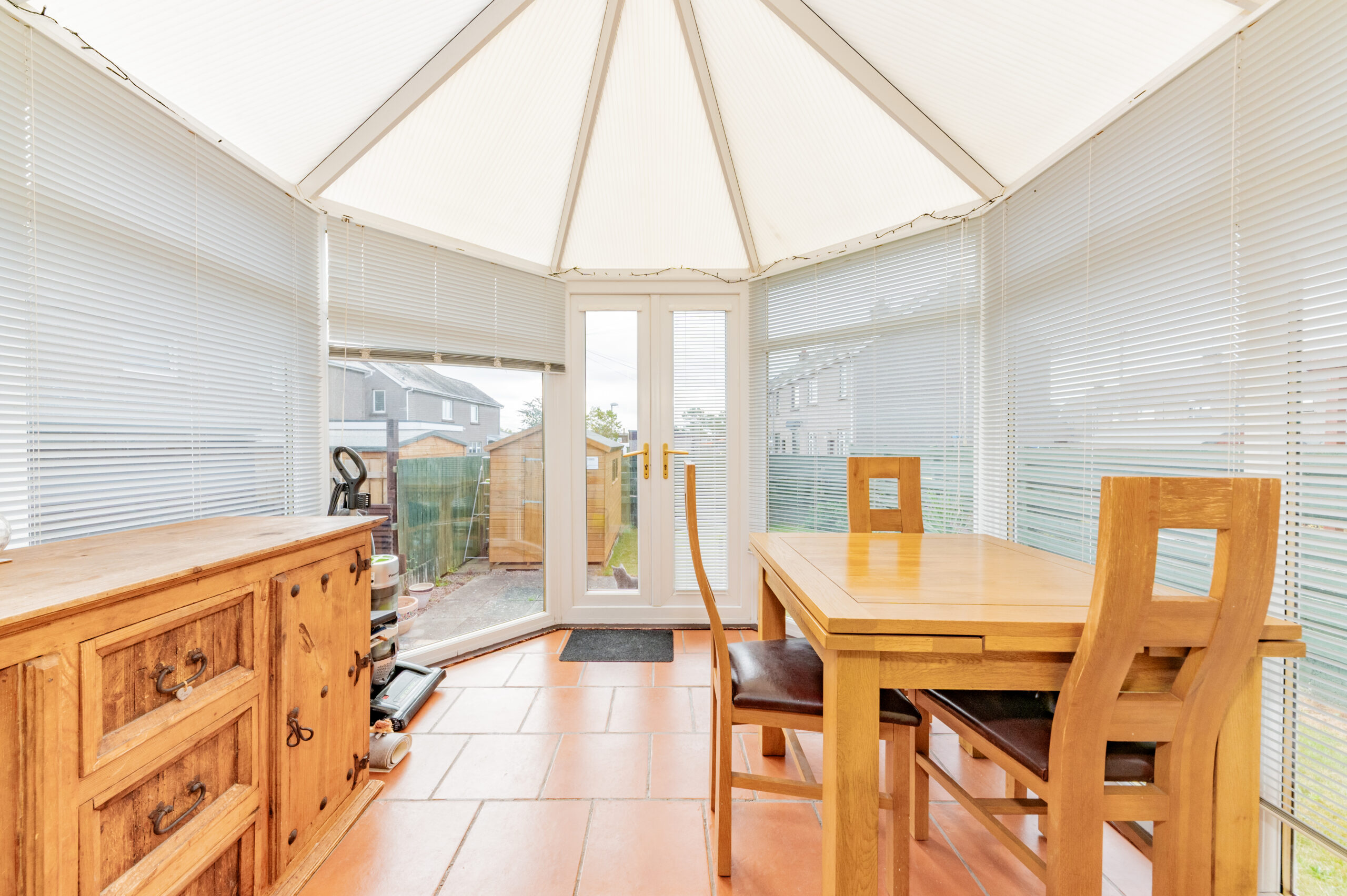ACCOMMODATION COMPRISING: ENTRANCE HALL AREA, LOUNGE, KITCHEN, CONSERVATORY/SUN ROOM; UPPER FLOOR:- 2 DOUBLE BEDROOMS AND BATHROOM