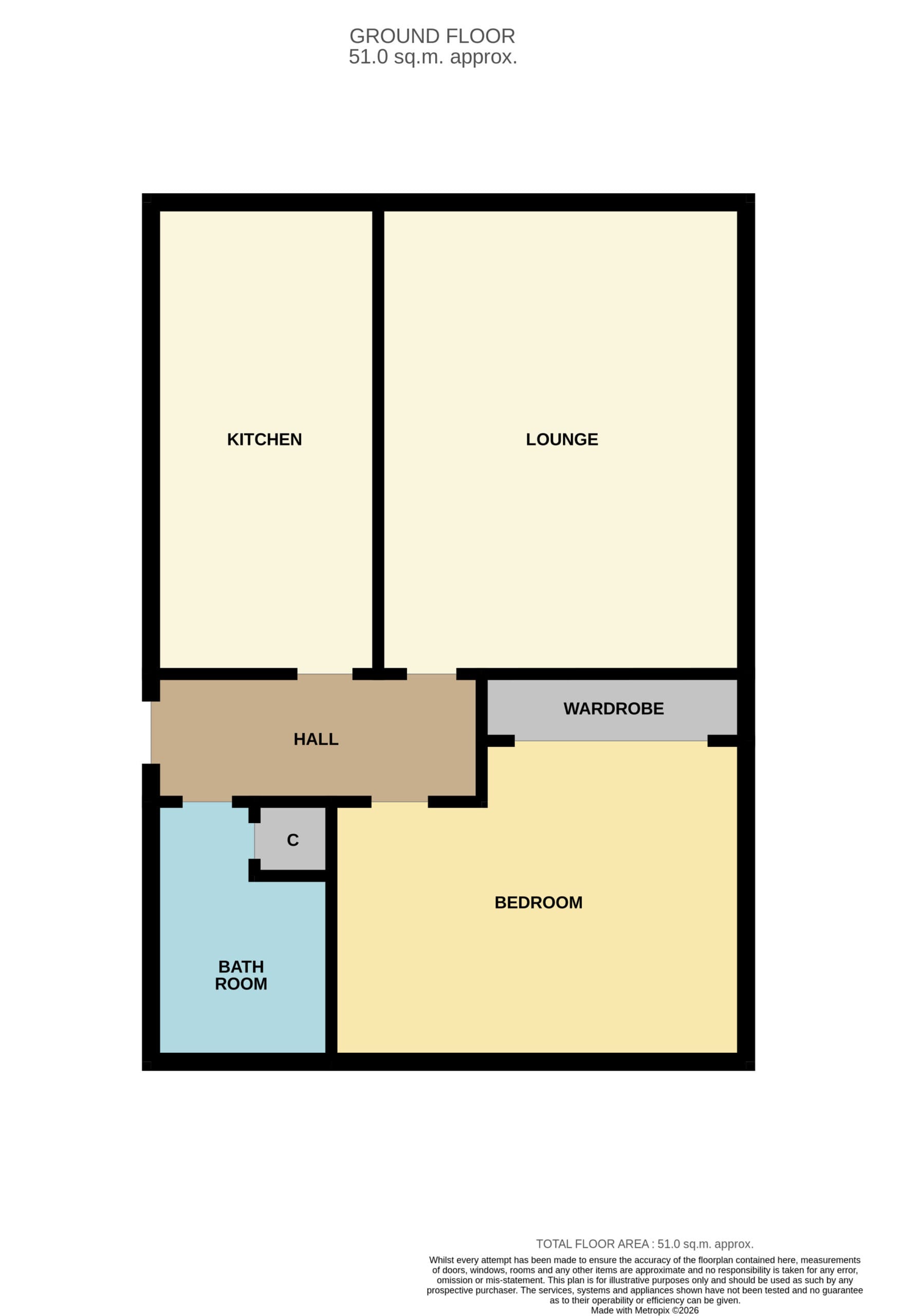 ACCOMMODATION COMPRISING: ENTRANCE HALLWAY, BATHROOM, KITCHEN, BEDROOM, LOUNGE.