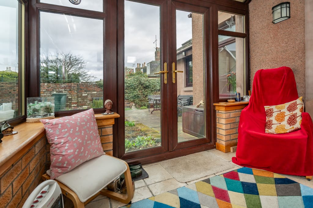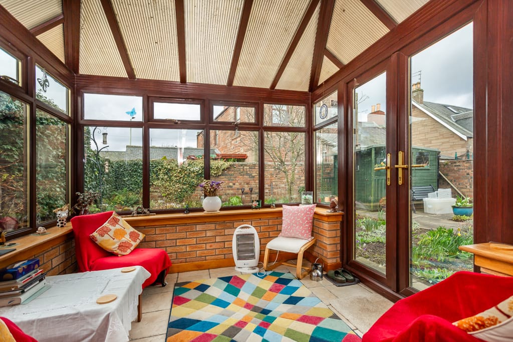 ACCOMMODATION COMPRISING: ENTRANCE VESTIBULE, BEDROOM 3/STUDY/DINING ROOM, GROUND FLOOR BATHROOM, KITCHEN, LOUNGE, CONSERVATORY; UPPER FLOOR:- 2 BEDROOMS, SHOWER ROOM.