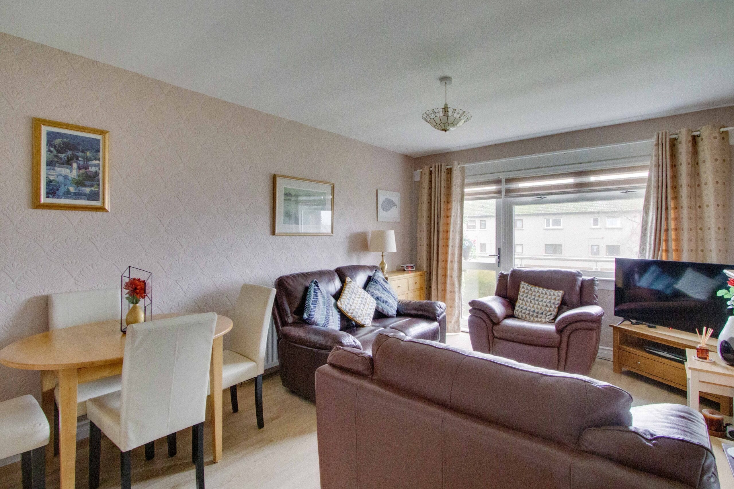 This well-presented FIRST FLOOR FLAT is situated in a convenient and central location close to local amenities and transport links. The accommodation comprises of a welcoming entrance hallway, a bright and spacious lounge with balcony, a fitted kitchen, two well-proportioned bedrooms and a shower room. The property benefits from gas central heating and double glazing, contributing to comfort and energy efficiency throughout the year. The flat offers practical and flexible living space, making it suitable for a range of purchasers including first time buyers, professionals or those looking to downsize. Its position within Monifieth provides easy access to shops, schools and the surrounding road and rail networks, as well as nearby costal and recreational amenities.