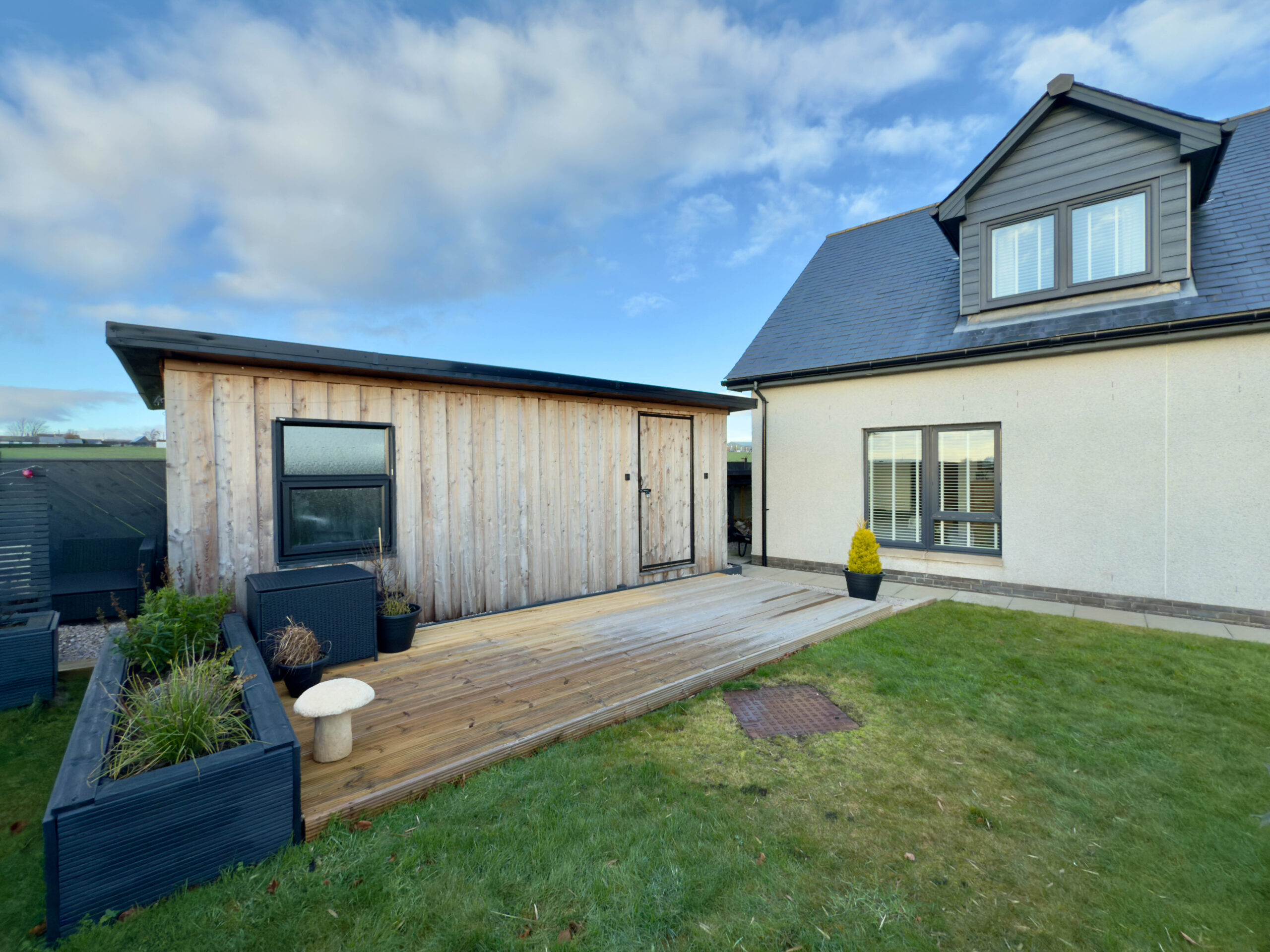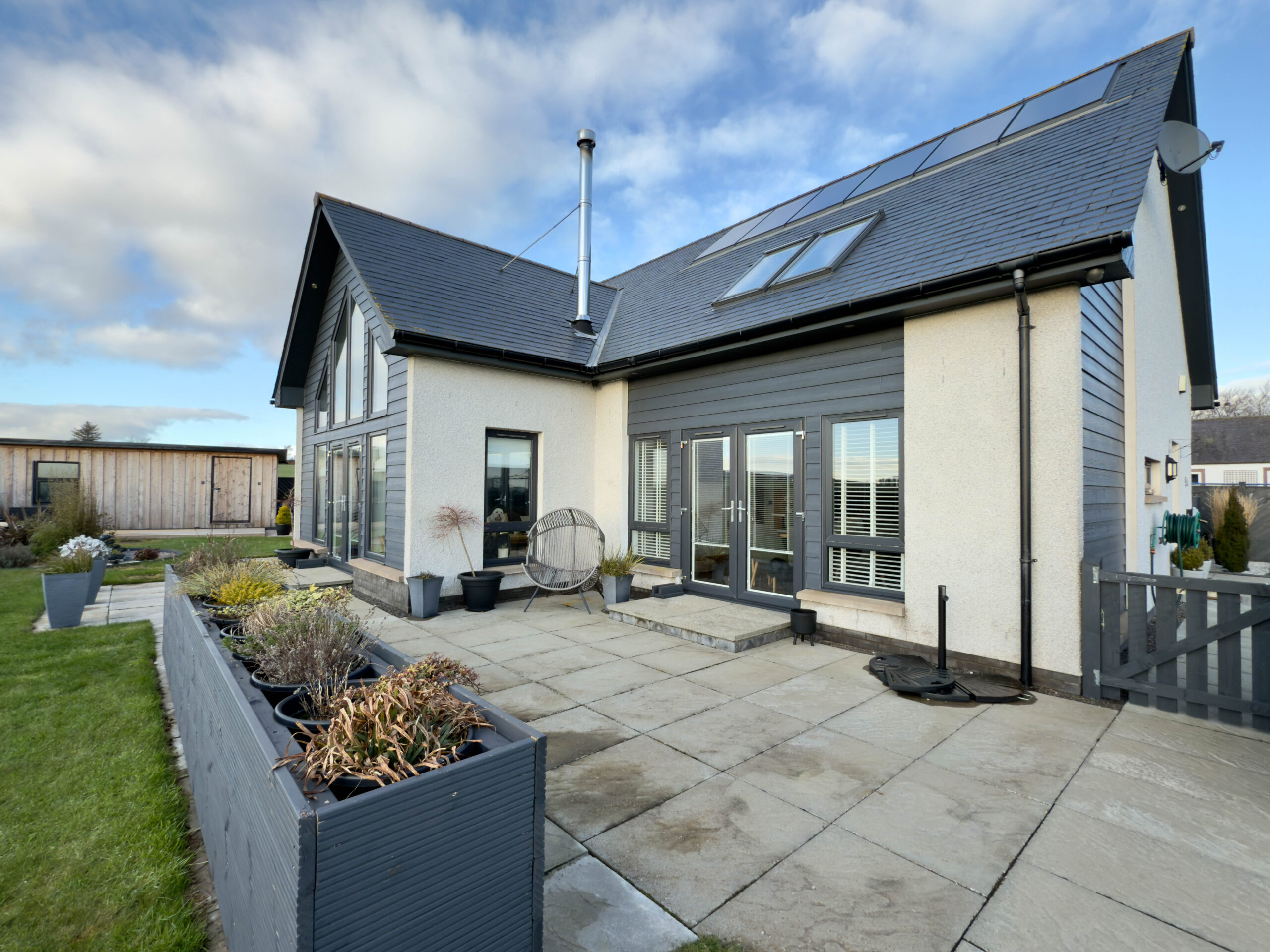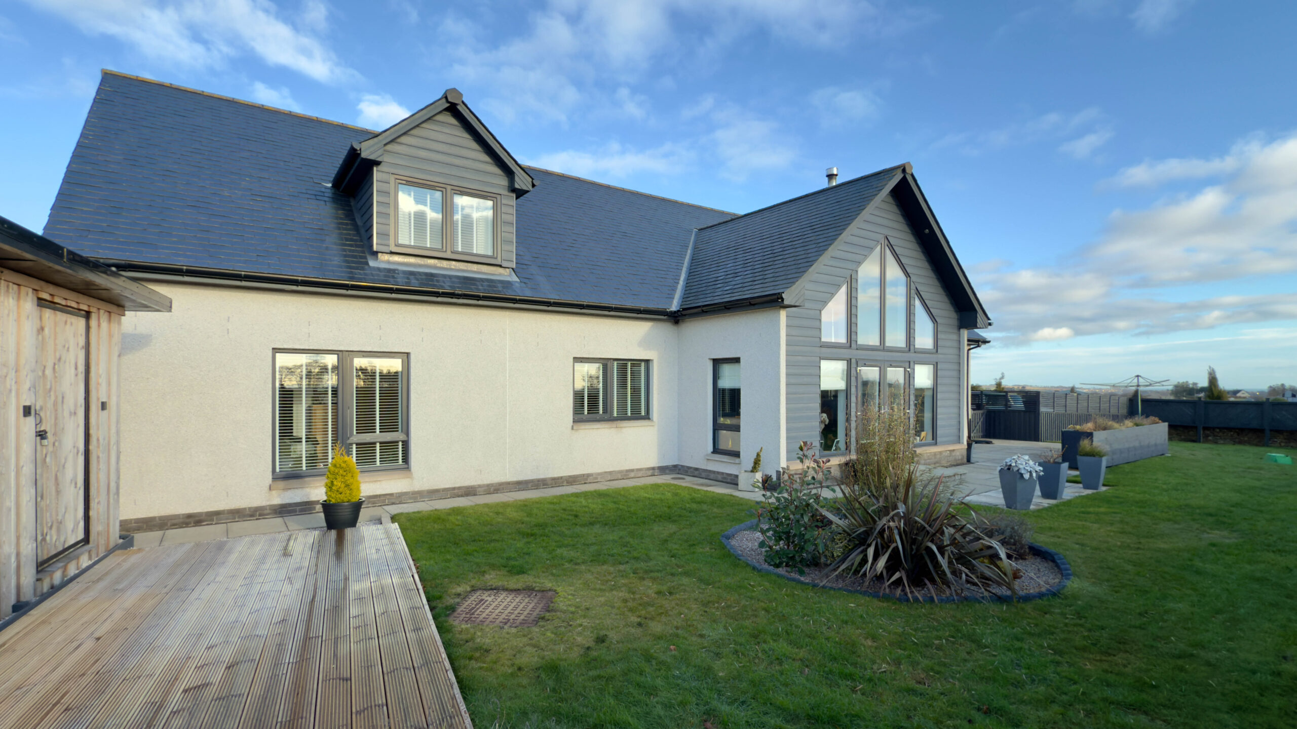 Externally, you have vehicular access via sliding metal entrance gates into a large, mono-block driveway area, offering car parking for 4/5 cars. There is an Electric Charging Point, outside electric power point, security camera system and external lighting. A pathway leads around to the rear of the property where there is a lawned area, with boundary fencing offering privacy and seclusion. To the front of the property has a large lawn area, paved patio and built-in composite planters, offering low maintenance. There are dry-stone boundaries with timber top fencing, offering privacy. Also of note is a large timber Workshop and a lovely south-facing decking area, with decorative external lighting, an ideal outside entertaining area offering stunning countryside views stretching out over to the coast.