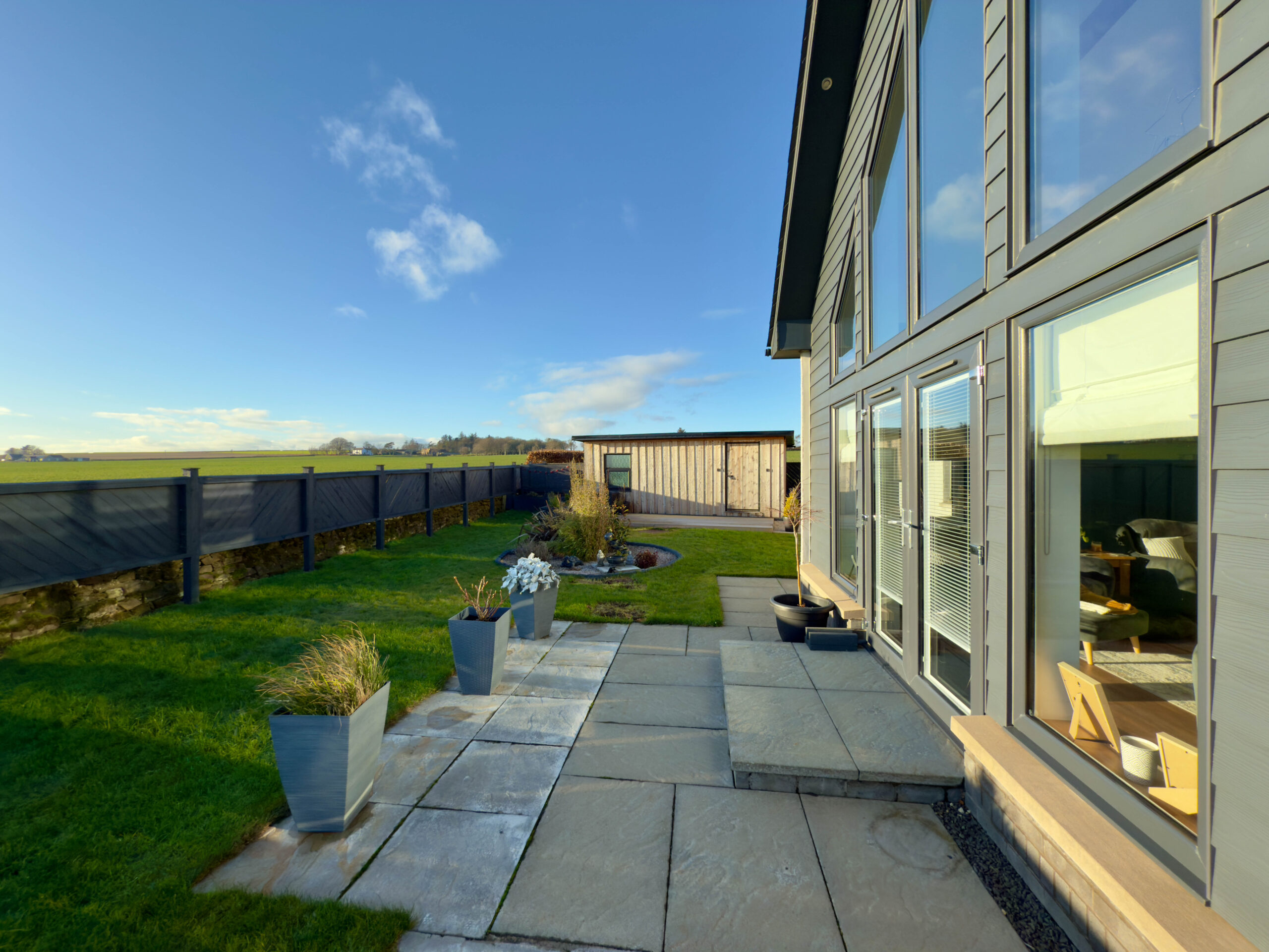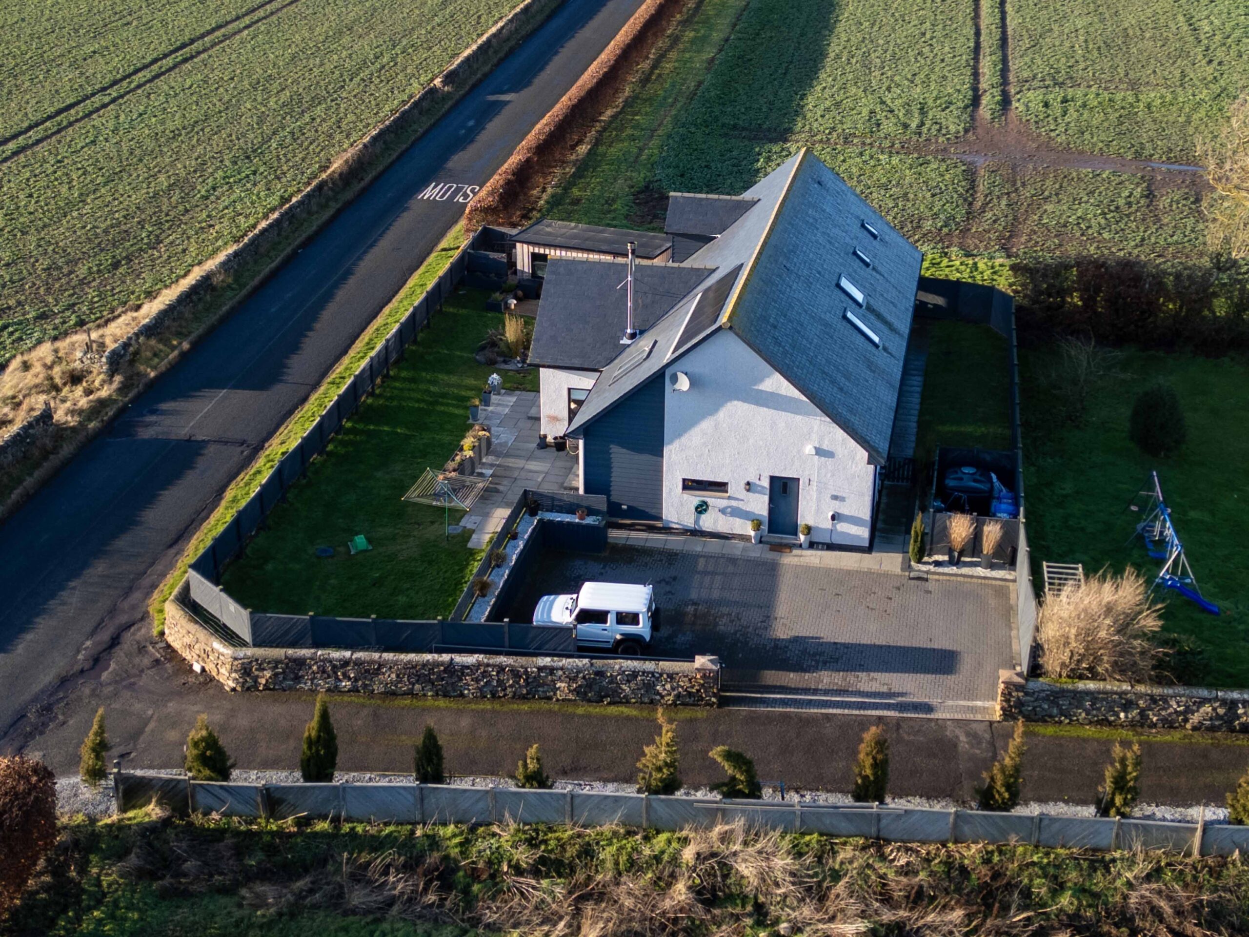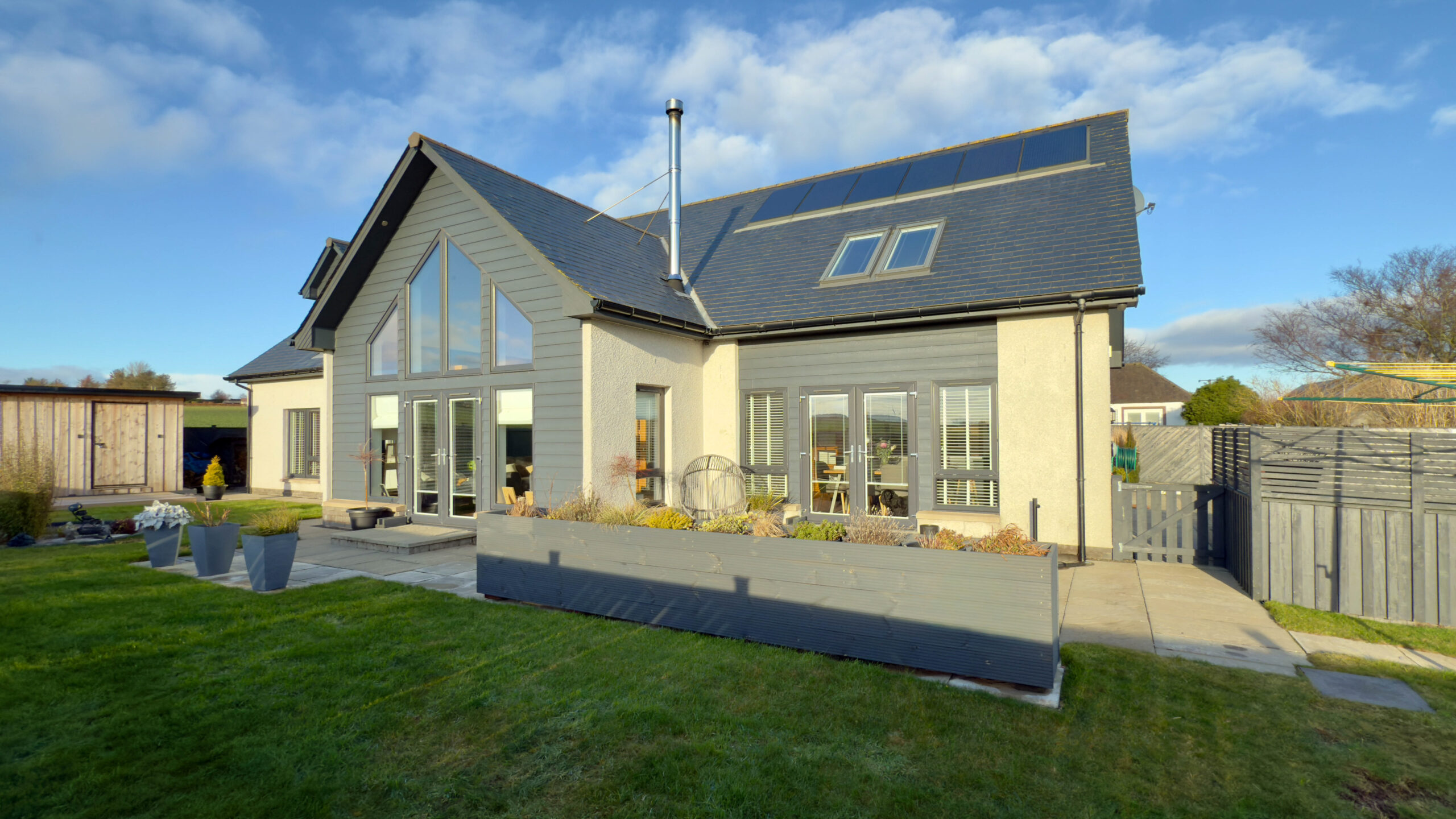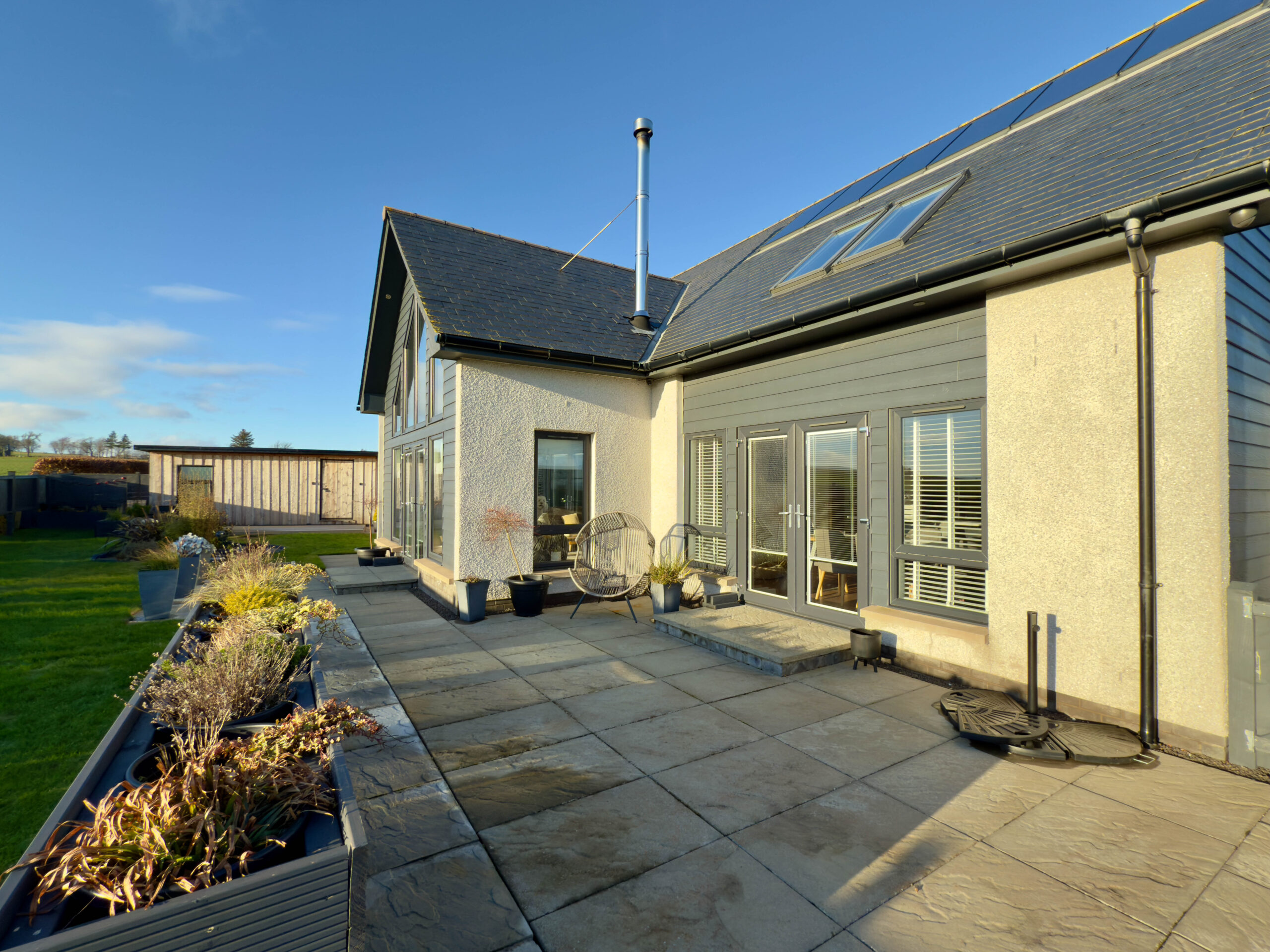 Externally, you have vehicular access via sliding metal entrance gates into a large, mono-block driveway area, offering car parking for 4/5 cars. There is an Electric Charging Point, outside electric power point, security camera system and external lighting. A pathway leads around to the rear of the property where there is a lawned area, with boundary fencing offering privacy and seclusion. To the front of the property has a large lawn area, paved patio and built-in composite planters, offering low maintenance. There are dry-stone boundaries with timber top fencing, offering privacy. Also of note is a large timber Workshop and a lovely south-facing decking area, with decorative external lighting, an ideal outside entertaining area offering stunning countryside views stretching out over to the coast.
