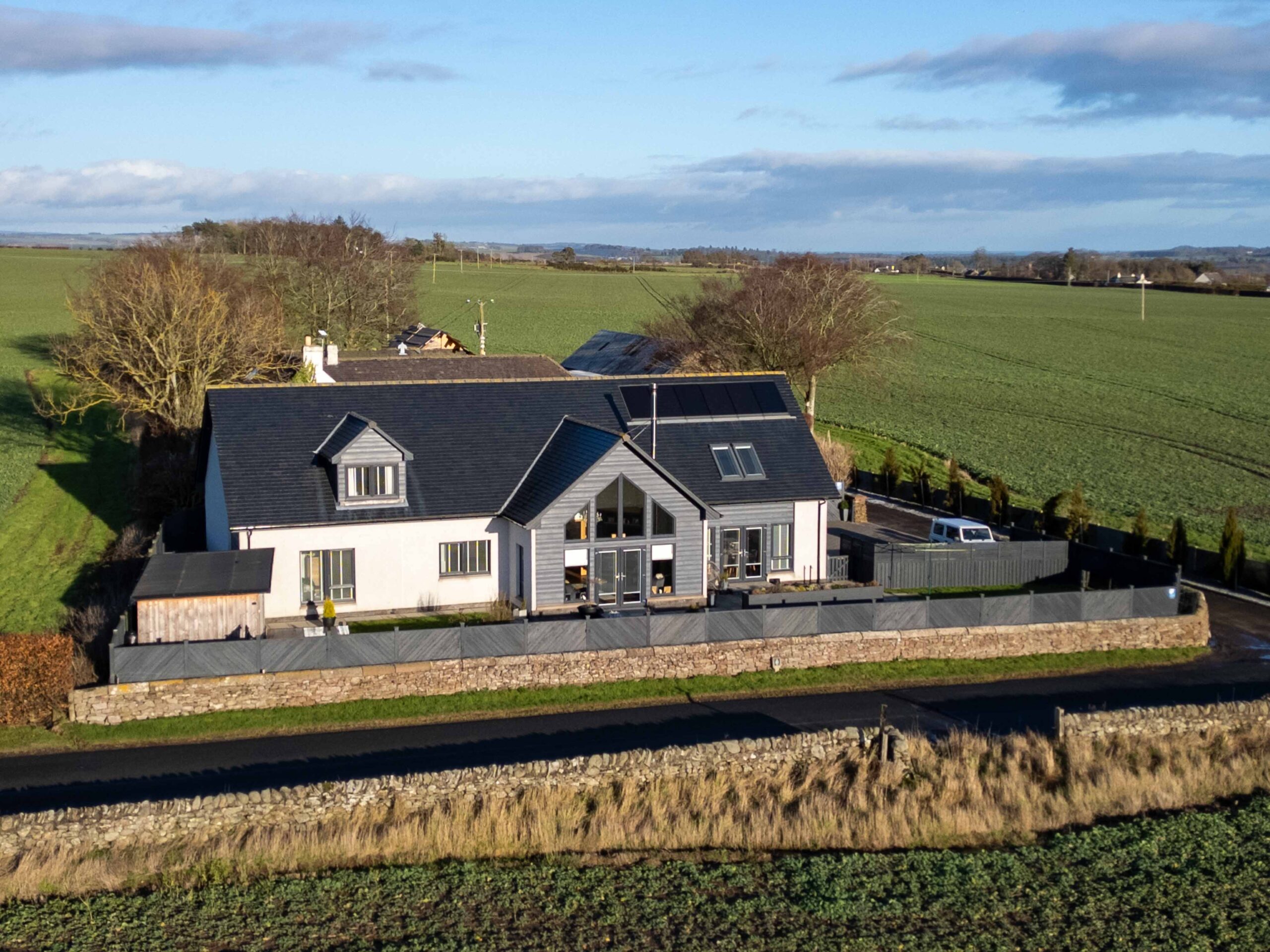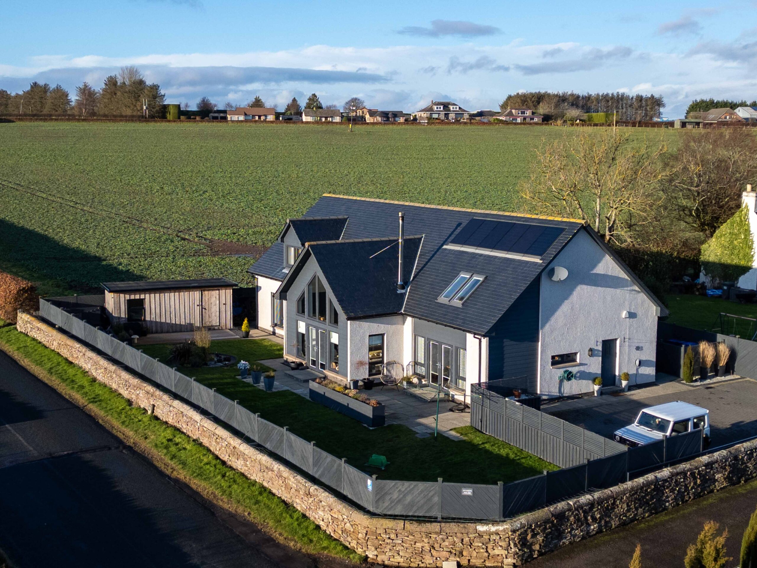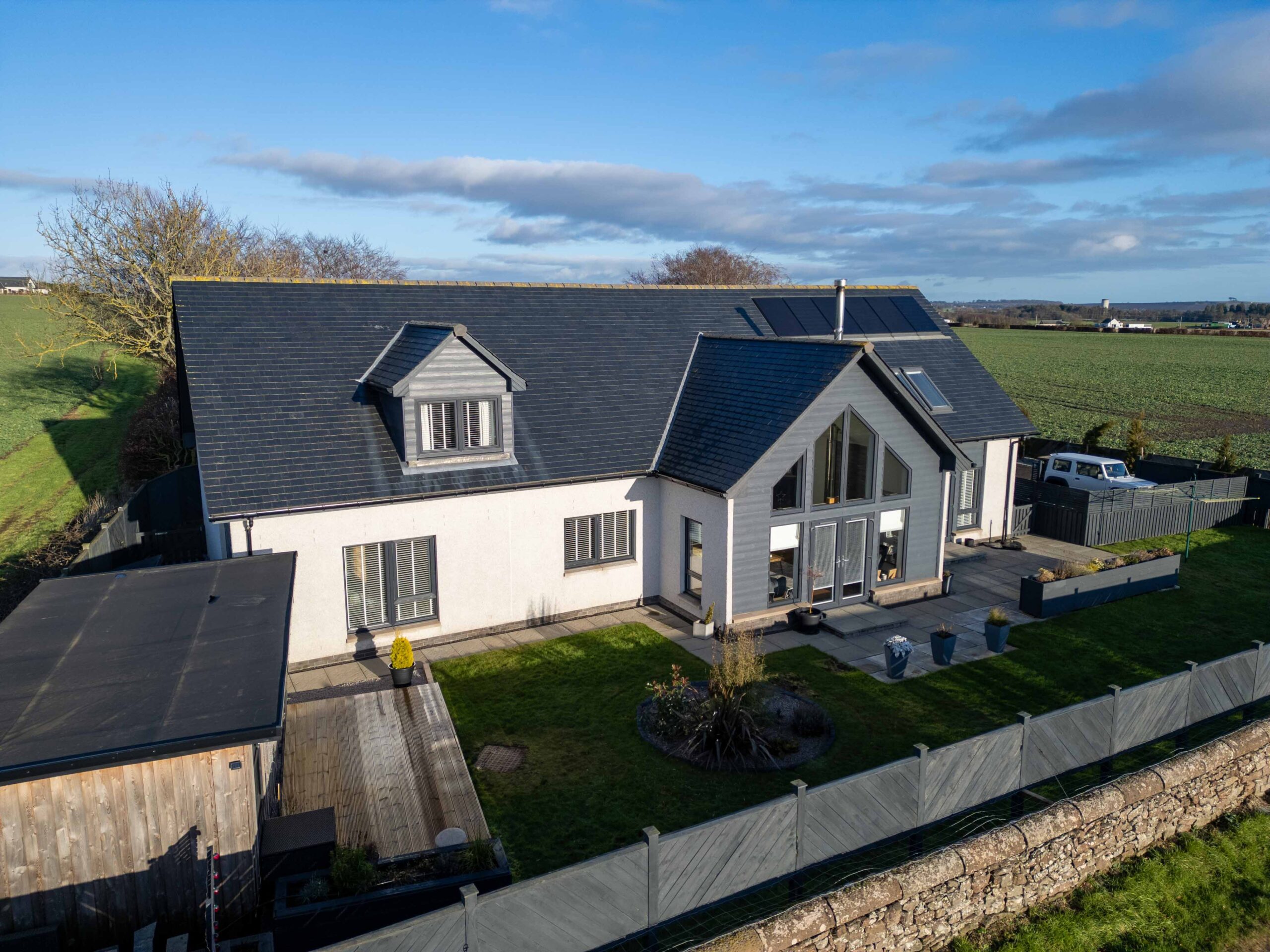 Connelly Yeoman Estate Agency are excited to bring to market this highly distinctive and much admired, Architect designed and very unique, SUPERIOR DETACHED VILLA which is ideally set within a charming countryside setting known as Woodville, By Arbroath, located on the western edges of the town and within easy reach of all town centre amenities and services. This beautifully presented Villa exudes luxury and style, offering spacious and well set out accommodation over two floors, with neutral decor complimented by natural wood fittings and modern high quality finishes including Amtico oak wood flooring throughout the ground floor, oak wood veneer internal doors, feature oak wood staircase with glass balustrade and feature lighting. There are also the benefits of an Oil fired central heating system and quality double glazing throughout.